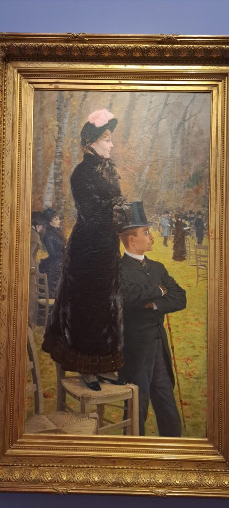 Emblematica in tal senso è Alle corse di Auteuil – Sulla seggiola di Giuseppe De Nittis (1883), dove la mondanità parigina si fa spettacolo e osservazione reciproca.
