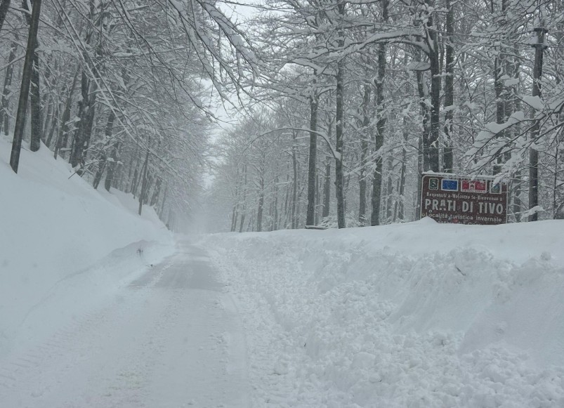 Maggiori criticità sui rilievi del Gran Sasso e della Majella: transito vietato sui tratti di maggior pericolo ed evacuate strutture ricettive.