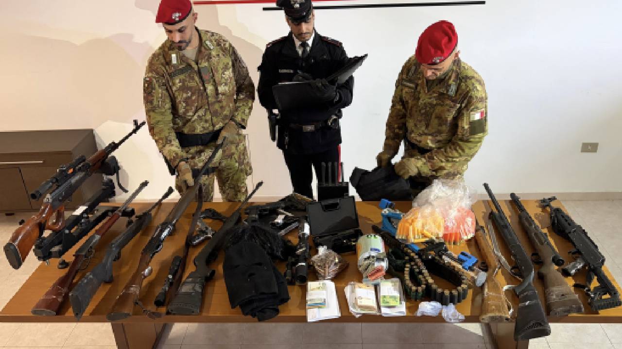 Le armi, l’esplosivo, lo stupefacente, il denaro e tutto il vario materiale rinvenuto venivano posti sotto