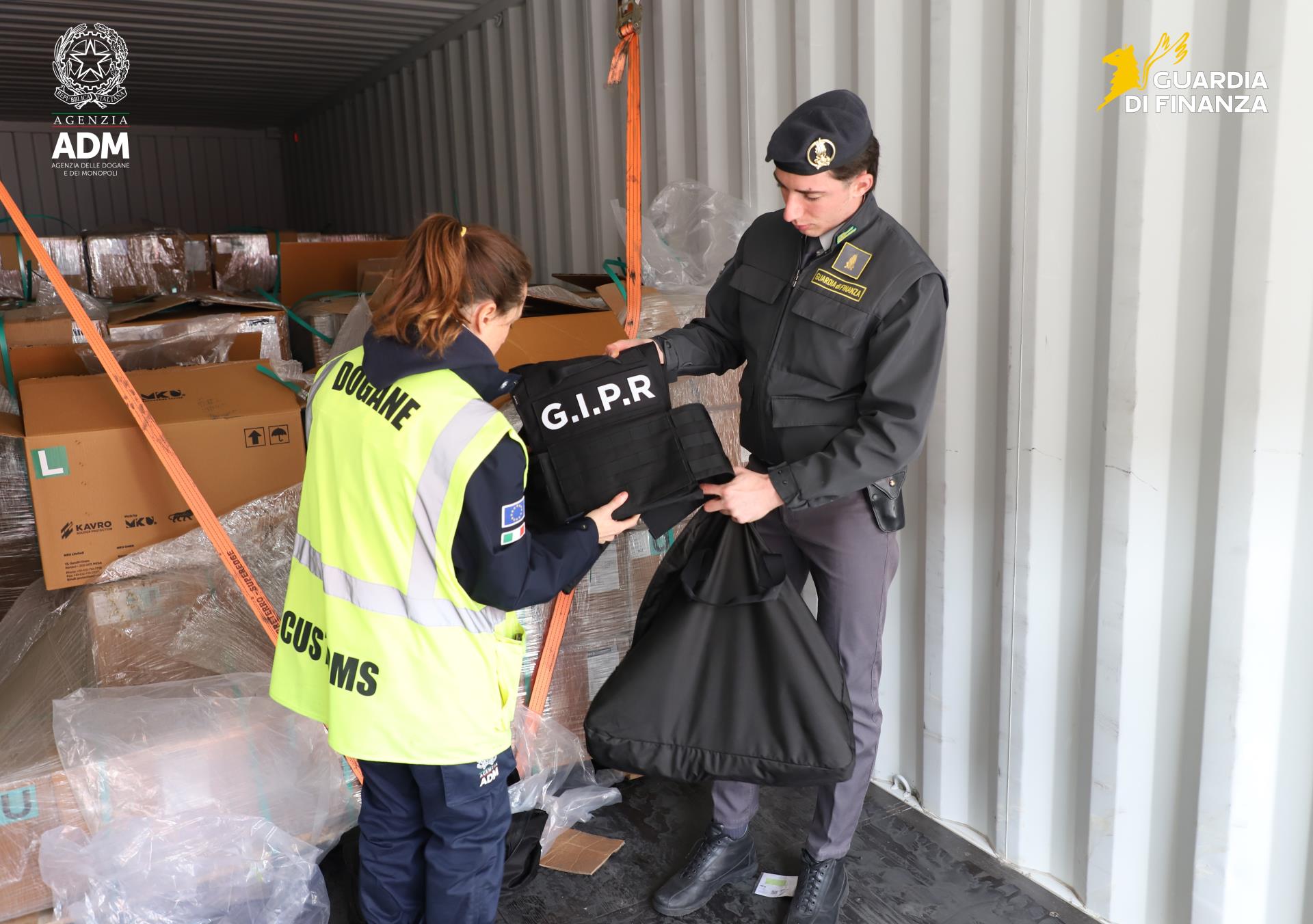 Genova – Un carico di oltre 50 tonnellate di equipaggiamento tattico e di armamento, per un valore stimato di circa 6 milioni di euro, è stato bloccato nel porto. L’operazione è frutto di un lavoro congiunto tra i funzionari dell’Agenzia delle Dogane e dei Monopoli (UADM) e i finanzieri del Comando Provinciale.