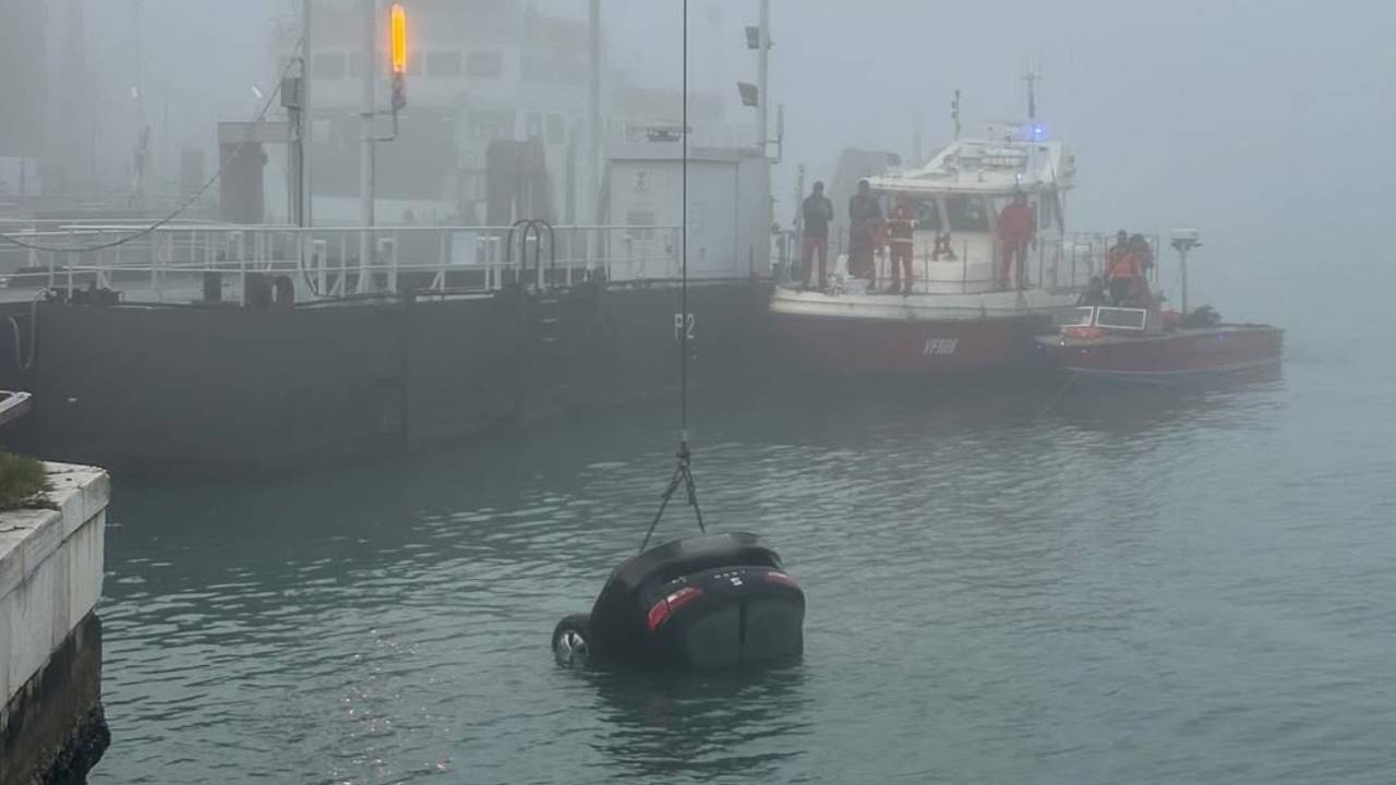 Nebbia fitta, sbaglia manovra e finisce con l’auto in laguna