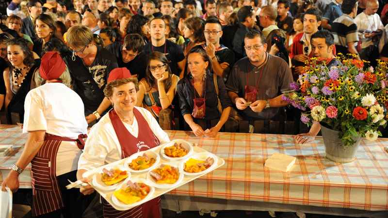 Ce ne sono di tutti i tipi. Oltre al Santo Patrono, si va dalla sagra della cozza pelosa a quella del ritorno dell’emigrato, dalla frisella più grossa mai sfornata alla benedizione dei trattori. Inoltre, la sagra della lumaca, dei sapori antichi, della zucca e tante altre ancora. Il bello di queste manifestazioni è che non c’è bisogno della prenotazione tramite app o di tutto il ventaglio di opzioni tecnologici. Basta decidere e partire per trovarsi in qualche piazza dei nostri tanti borghi dislocati lungo il Paese, con dei lunghi tavoli con panche in legno per trovarsi tra amici, familiari e gente mai vista prima. Basta questa atmosfera per trasmettere ilarità, socialità, desiderio di conversare anche con gli sconosciuti.