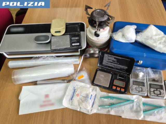 All’interno, gli agenti si sono trovati davanti ad un ambiente organizzato nei minimi dettagli, con uno spazio suddiviso in due aree da una tendina, destinato alla lavorazione della cocaina in crack. Sul posto sono stati rinvenuti un fornelletto intriso di sostanza stupefacente, un mestolo con evidenti residui, guanti in lattice, pinze sterili ancora confezionate, sacchetti per rifiuti sanitari, bicarbonato e due bilancini di precisione.
