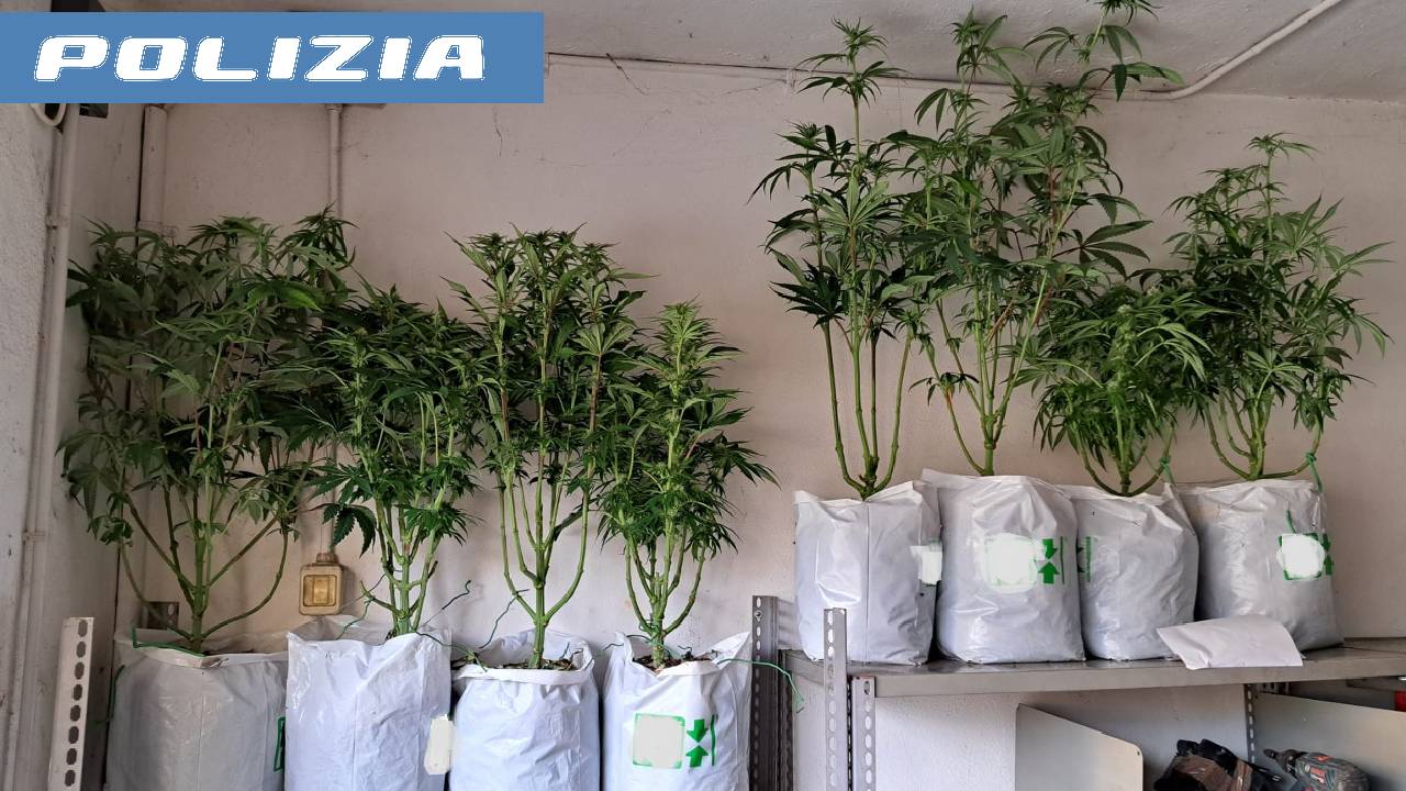 Nel corridoio dell’abitazione la polizia ha rinvenuto due serre con 21 vasi contenenti piante già pronte e germogli di marijuana di varie altezze e foglie essiccate. Nel box doccia venivano recuperati diversi prodotti utilizzati per la coltivazione come fertilizzanti, terra, contenitore a led, sacchetti in tela per setacciare le piante e altri prodotti chimici.