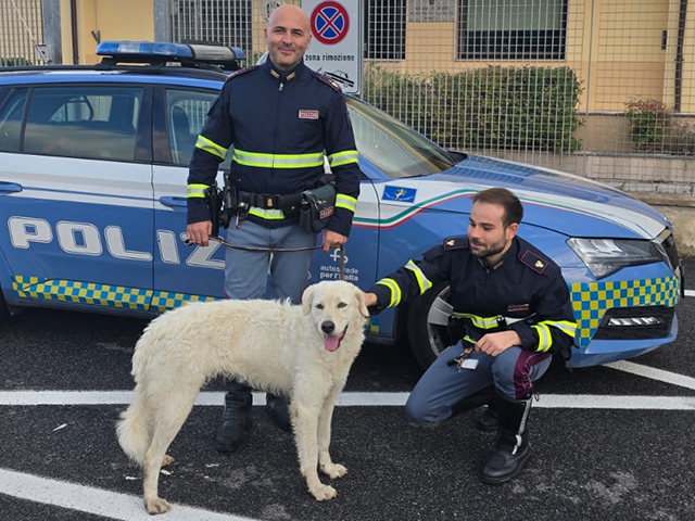 Arezzo – Una pattuglia della Polizia Stradale, di passaggio presso l’area di sosta Badia al Pino Est, riceveva una segnalazione da parte di alcuni utenti fermi all’Area di Servizio. I viaggiatori avevano notato, il giorno precedente, un cane di grossa taglia, dal pelo bianco, aggirarsi nella zona. Nonostante gli sforzi di alcuni passanti, nessuno era riuscito ad avvicinarsi all’animale, che sembrava diffidente e spaventato.