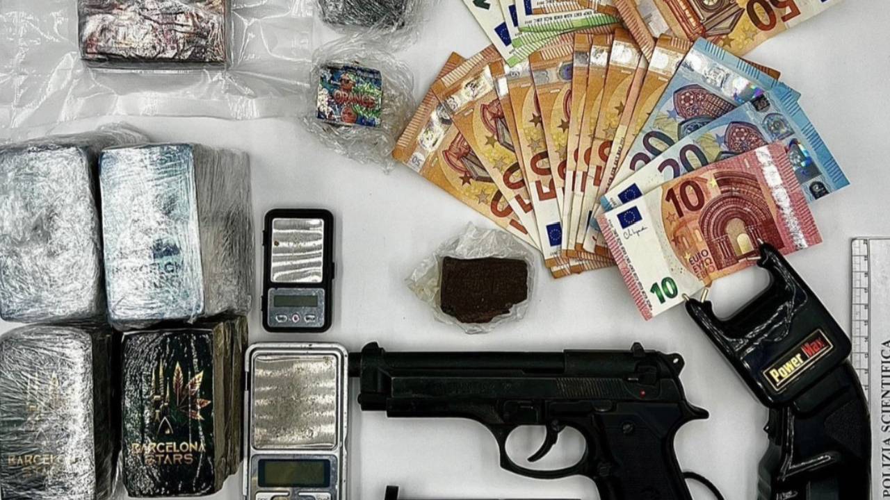 Nel corso dell’attività sono stati inoltre sequestrati uno storditore elettrico, due bilancini di precisione, materiale per il confezionamento delle dosi, un apparecchio per il sottovuoto, una pistola a salve replica Beretta in metallo pesante priva del tappo rosso e la somma di 1.250 euro in contanti, ritenuta provento dell’attività di spaccio.