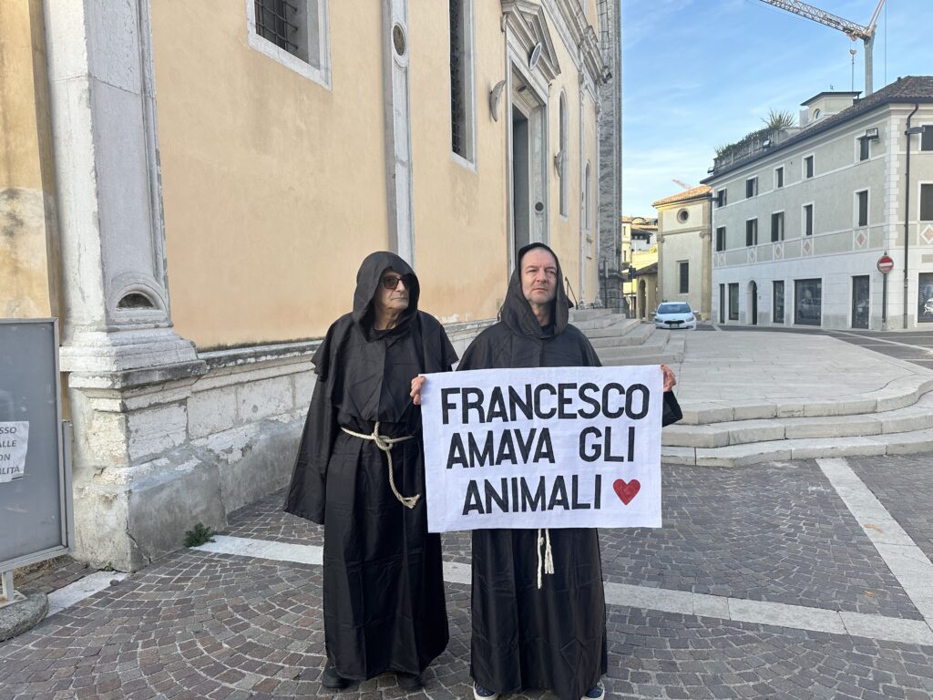Per protestare contro il cartello di divieto affisso sulla porta del Duomo, i militanti hanno effettuato un blitz simbolico travestendosi da frati francescani ed esponendo un cartello con la scritta: “Francesco amava gli animali”. Sul posto sono intervenuti agenti della Digos che hanno identificato gli attivisti, i quali hanno consegnato spontaneamente il cartello.