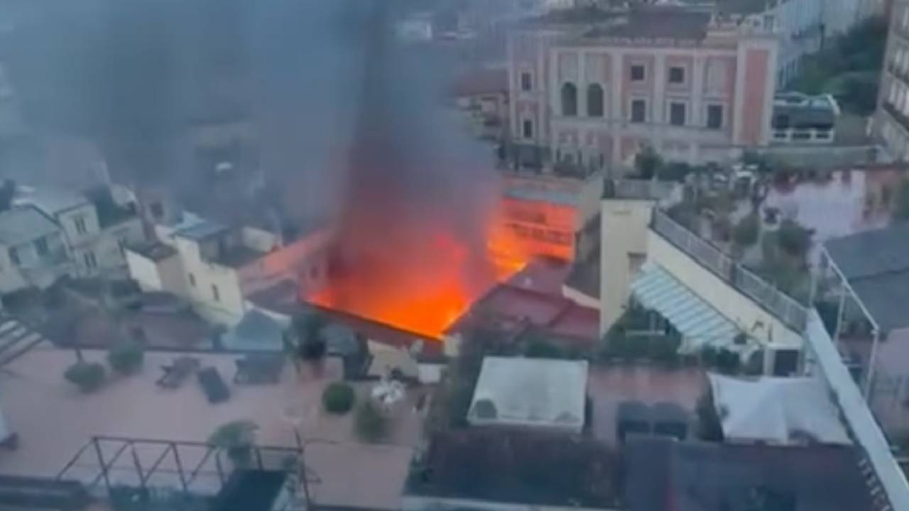 Il rogo è scoppiato all’alba nel quartiere Chiaia. Quattro persone intossicate, residenti in fuga per il fumo denso.