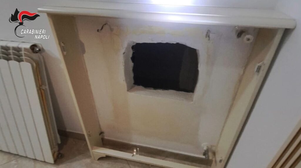 Blitz dei carabinieri: catturato un affiliato camorristico nascosto in un nascondiglio in muratura ricavato all’interno di un appartamento.