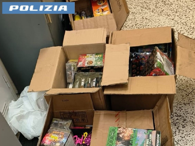 Nel garage dello stabile interessato, adibito a rimessa per i mezzi di trasporto, i poliziotti hanno rinvenuto ulteriori scatole colme di artifici pirotecnici della stessa categoria, pari a oltre 100 chili lordi.