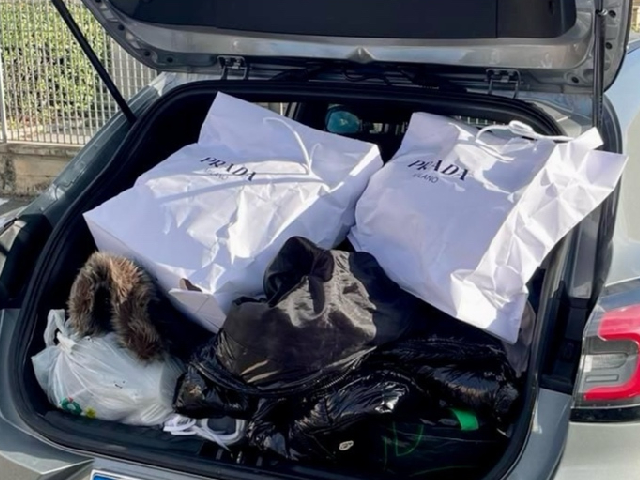 Le operazioni di ricerca hanno consentito di rinvenire, occultati nel bagagliaio, numerosi capi di abbigliamento e accessori di marchi di lusso (tra cui Louis Vuitton, Prada, Hermès, Gucci) per un valore commerciale stimato di circa 11.000 euro, dei quali i fermato non erano in grado di giustificare la provenienza. Sono stati, altresì, rinvenuti e sequestrati strumenti atti allo scasso (punteruolo e pinze).