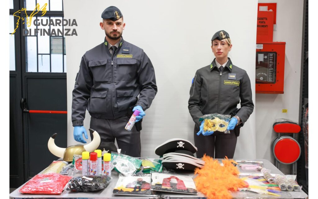 Al loro interno erano abusivamente commercializzate numerose e differenti tipologie di articoli prevalentemente destinate all’uso da parte dei bambini (tra cui stelle filanti, maschere, parrucche, schiume, spray, trombette, coriandoli e vestiti per bambini), non conformi ai requisiti previsti dalla vigente normativa per la vendita al pubblico.