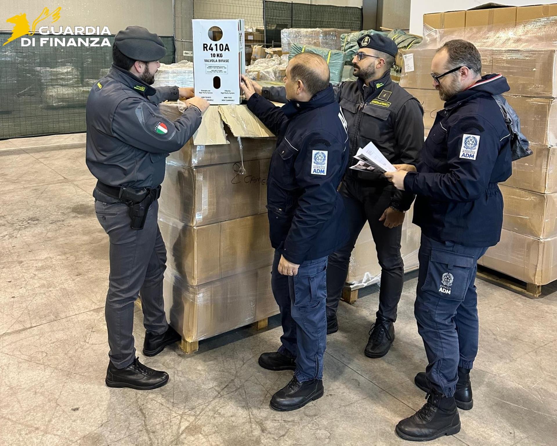Venezia – I finanzieri, in collaborazione con i funzionari dell’Agenzia delle Dogane e dei Monopoli (ADM), nell’ambito delle attività di vigilanza sulle merci in arrivo nel porto lagunare, soggette a particolari restrizioni ambientali, hanno sequestrato in due distinti servizi oltre 24.000 kg di gas refrigerante di contrabbando, contenuto in 1.400 bombole, per un valore commerciale complessivamente stimato pari a circa 465.000 euro, introdotto irregolarmente nel territorio dell’Unione Europea, in violazione al Regolamento (UE) 2024/573.