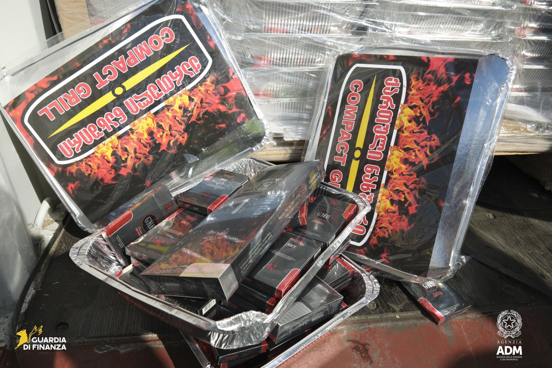 Il carico doveva trasportare carbone per barbecue ma i finanzieri hanno rinvenuto tabacchi di contrabbando, occultati dietro a vaschette di alluminio.