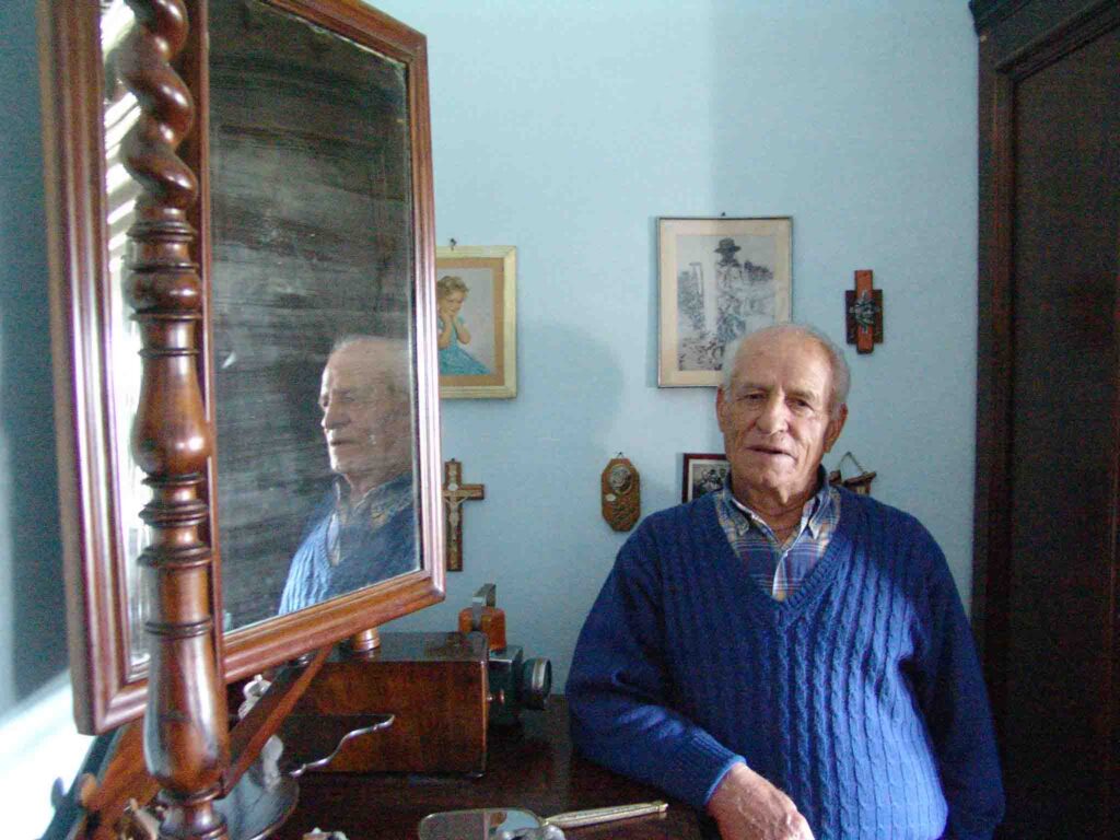 Era il 7 Maggio del 2005 quando, appena appresa la notizia del famoso fantasma il cui volto appariva su uno specchio da tavolo, ci recammo a Villa Mussolini con un paio di colleghi. Ad accoglierci un personaggio davvero singolare, tale Tersilio Rossi, 78 anni all’epoca dei fatti, ex camicia nera, poi guida turistica di grande cultura storica. L’uomo accompagnava turisti e visitatori in giro per Villa Carpena, parlando di cimeli e reperti antichi, raccontando aneddoti e storie familiari di Benito e Rachele.