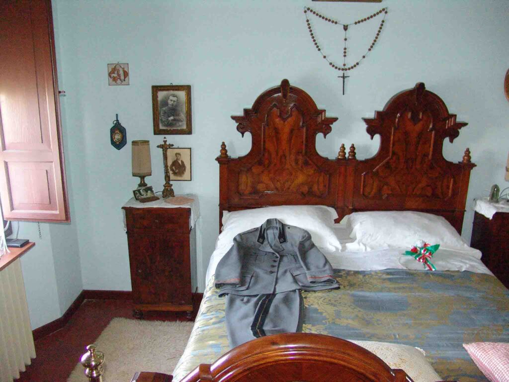 Dopo il consueto tour fra le stanze dell’antico fabbricato, ancora oggi ben conservato, il capo manipolo del Regime ci mostrava la sala da pranzo di rappresentanza, lo studio del Capo del Fascismo con le sue penne e calamai, i labari, gagliardetti e bandiere appoggiate sui muri, i corridoi con le divise e le armi appese alle pareti sino alla camera da letto di S.E. il Duce dell’Impero.