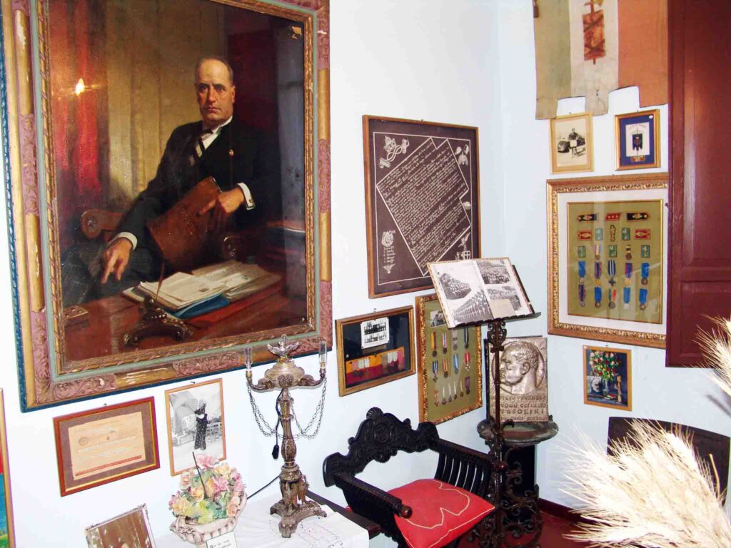 Il palazzetto a tre piani edificato nel 1923 si trova nella frazione forlivese di San Martino in Strada, esattamente in via Crocetta 24, a tredici chilometri da Predappio, paese natale del maestro elementare e giornalista, caporal maggiore dei bersaglieri nella prima guerra mondiale, poi divenuto presidente del Consiglio dopo la marcia su Roma.