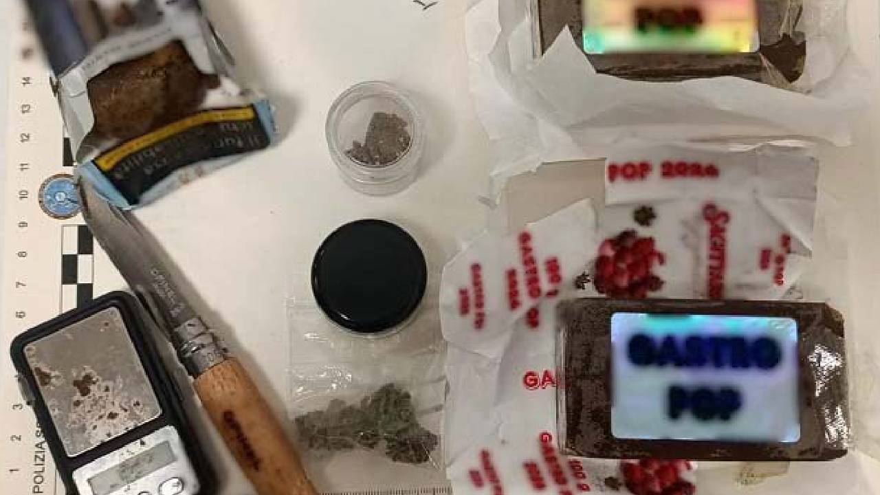 I poliziotti hanno quindi portato l’auto con i cinque ragazzi in Questura, dove l’ispezione si è fatta più precisa e approfondita, infatti, da un vano ricavato nella console centrale del cruscotto dell’auto, sono saltati fuori quasi due etti e mezzo di hashish, un bilancino elettronico ed un coltello a scatto ancora intriso di droga.