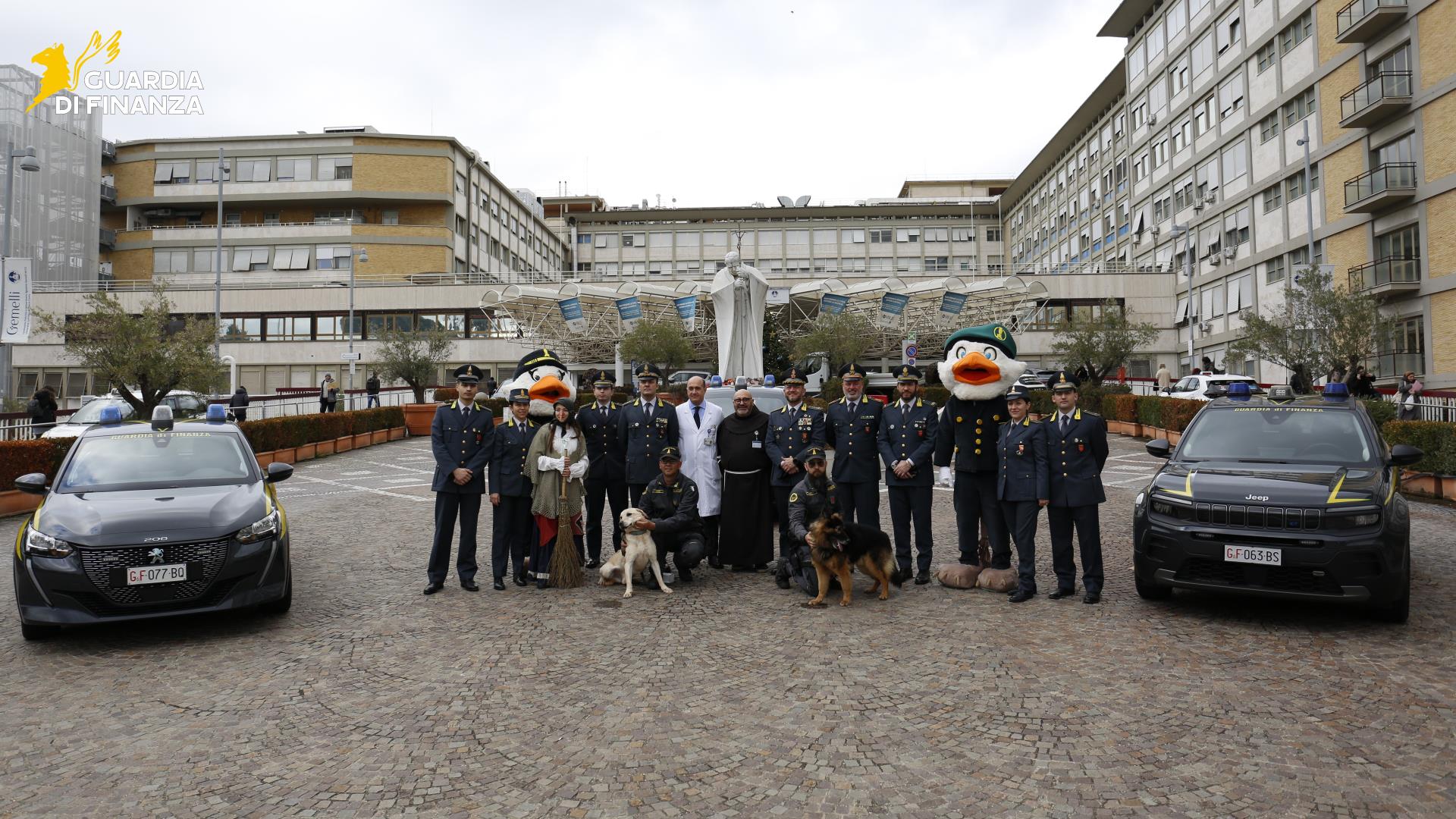 L’iniziativa, alla presenza del Prof. Antonio Ruggiero e della sua équipe sanitaria, nonché di Padre Alfredo Silvestri, si è aperta con il saluto ai piccoli degenti da parte di due unità cinofile del Corpo, il pastore tedesco Pluto e il labrador Cal. Successivamente, i militari, insieme alle mascotte “Finzy il Grifone” e “Fiammetta”, hanno distribuito doni ai bambini, regalando momenti di gioia e condivisione.