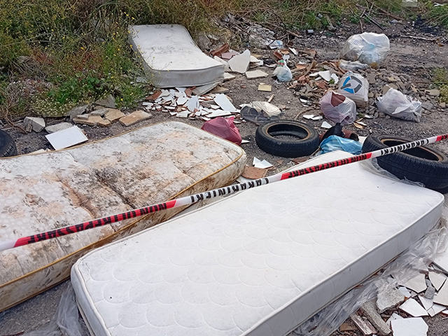 Un’ulteriore discarica abusiva è stata individuata a Castel Volturno, in via Carlo Plura e viale Fiume Po, dove erano depositati macerie, sanitari e pneumatici.