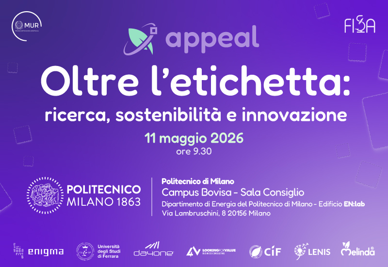 I risultati saranno presentati in un incontro pubblico lunedì 11 maggio, dalle 9.30 alle 12.30, presso la Sala del Consiglio del Dipartimento di Energia del Politecnico di Milano (EN:lab). L’evento è organizzato in collaborazione con l’Università di Ferrara e il Consorzio Melinda. Parteciperanno rappresentanti di Cluster SPRING, Novamont e del Consorzio Italiano Compostatori, seguiti da una tavola rotonda con imprese della filiera del packaging.