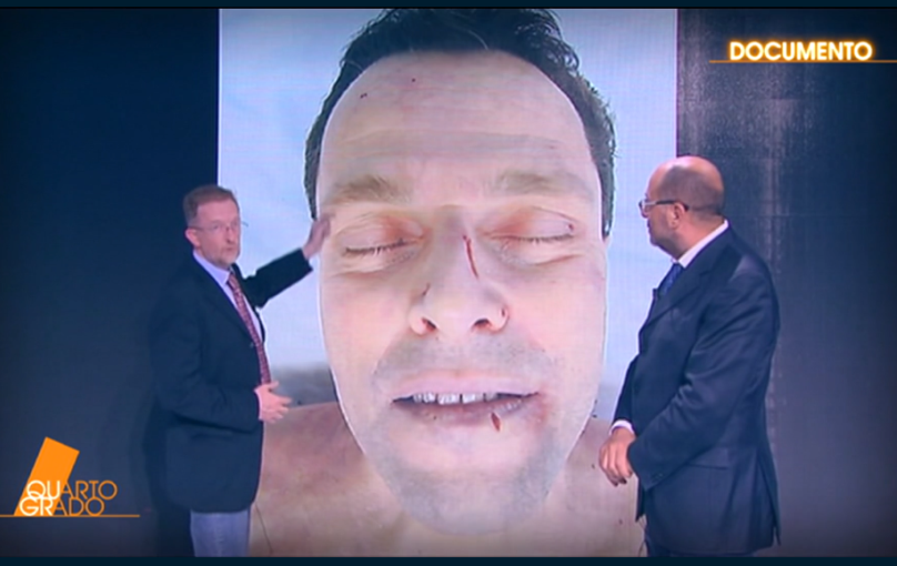 Uno degli elementi più specifici della ricostruzione riguarda un graffio individuato sull’orologio di Rossi. Secondo i consulenti, quel segno sarebbe stato provocato dall’anello di uno degli aggressori durante la colluttazione. Un dettaglio apparentemente minore, ma che nella simulazione diventa uno degli indizi più concreti a sostegno della tesi che quella sera nell’ufficio non ci fosse solo David Rossi.