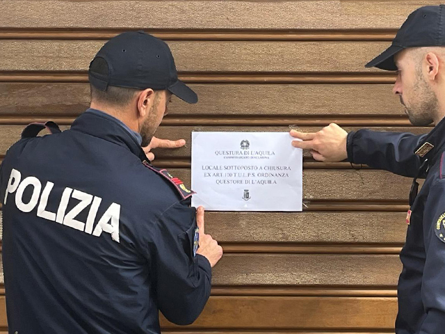L’Aquila – La polizia, su proposta del Commissariato di P.S. di Sulmona, ha adottato nei confronti di un locale ubicato nel capoluogo peligno l’art. 100 del Testo Unico delle Leggi di Pubblica Sicurezza, che prevede la sospensione temporanea della licenza in caso di accertate violazioni.