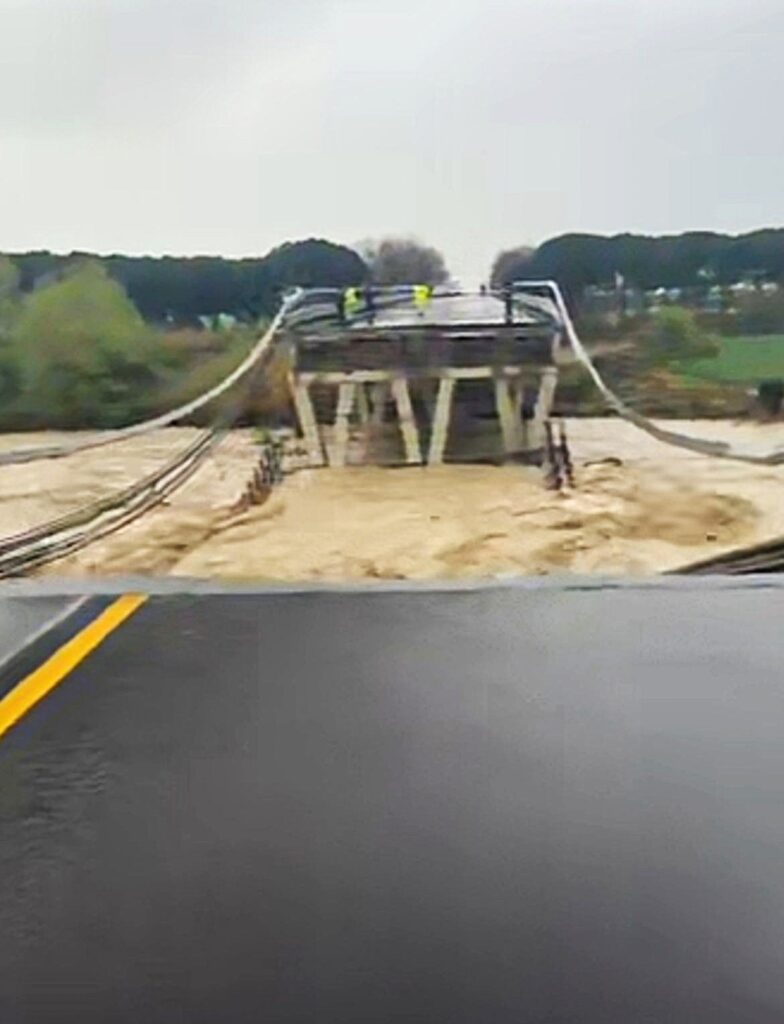 Campobasso – Il maltempo che da 72 ore sferza il medio Adriatico ha provocato il cedimento strutturale del ponte sul fiume Trigno, lo snodo vitale sulla Statale 16 che segna il confine tra Molise e Abruzzo. Intorno alle 9 di oggi, 2 aprile, la parte centrale della struttura ha ceduto di schianto finendo nel letto del fiume in piena. Il tratto era già stato interdetto al traffico proprio per consentire ai tecnici di effettuare dei sopralluoghi sulla stabilità del viadotto.