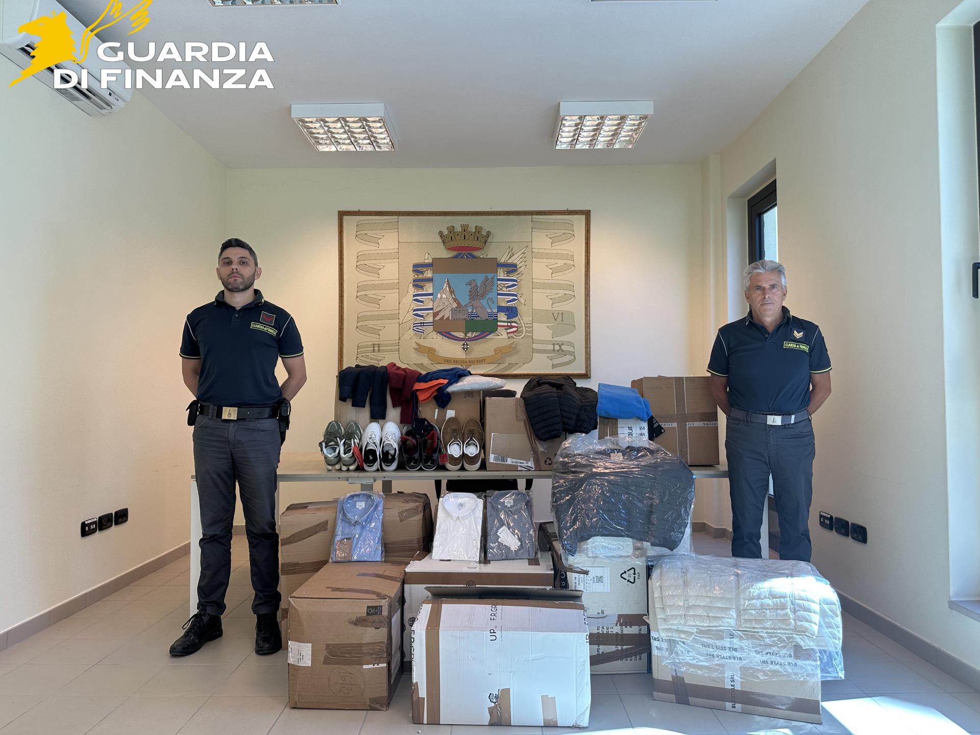 La Guardia di Finanza ha scoperto abbigliamento e accessori con marchi falsi: segnalati due soggetti all’Autorità Giudiziaria, in corso accertamenti sulla provenienza.