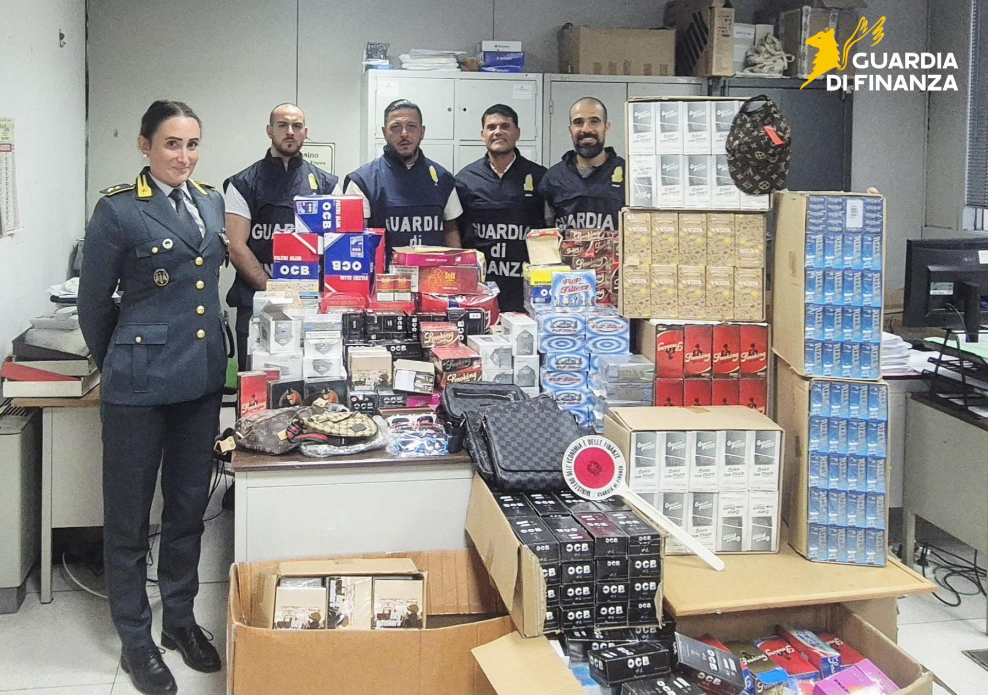 Da una ricerca più approfondita nei locali adiacenti al punto vendita, sono stati, altresì, rinvenuti ulteriori prodotti contraffatti. Complessivamente, sono stati sequestrati circa un milione e mezzo tra prodotti e accessori da fumo che sarebbero serviti per il confezionamento di sigarette, nonché 150 pezzi tra borse, occhiali e mascherine di stoffa riportanti i loghi contraffatti di note case di moda.