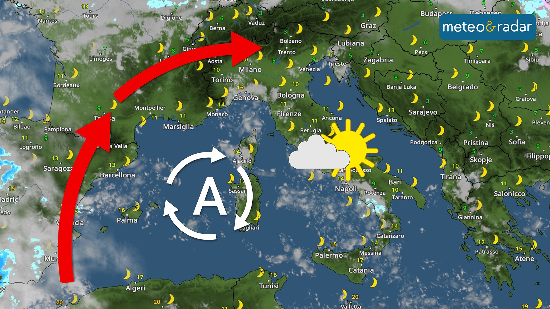 Roma – Un’area di bassa pressione, in avvicinamento dalla Francia, porterà correnti sud-occidentali caldo umide, con conseguenti precipitazioni, da sparse a diffuse, sui settori occidentali del nostro Paese, anche localmente a carattere temporalesco sulle aree costiere e sulle isole maggiori.