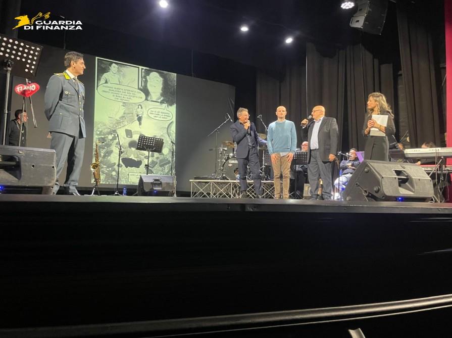 A fine spettacolo ha preso la parola il comandante provinciale della Guardia di Finanza, che ha ringraziato tutte le autorità intervenute e il pubblico presente in sala per l’entusiasmo, l’affetto e la generosità dimostrati e ha consegnato ai locali rappresentanti dell’Associazione Italiana Sclerosi Multipla (AISM), della Croce Rossa Italiana e dell’ “Unione Italiana dei Ciechi e degli Ipovedenti” il ricavato della serata benefica che, con riguardo a quest’ultimo ente morale, contribuirà a finanziare un’inedita progettualità finalizzata alla realizzazione di un fumetto in caratteri Braille (simboli tattili formati da sei punti in rilievo usati da persone cieche e ipovedenti per leggere e scrivere, messo a punto dal francese Louis Braille nella prima metà del XIX secolo) che sarà presentato alla prossima edizione della manifestazione “Trapani Comix”.