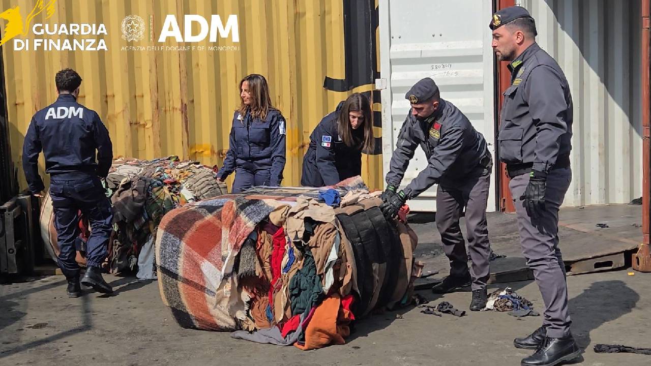 In particolare, a seguito di una specifica attività di analisi dei rischi locali, i funzionari dell’ufficio ADM e i finanzieri del II gruppo Napoli hanno accertato, all’interno dei containers, la presenza di numerosi sacchi contenenti indumenti, scarpe e borse usate, provenienti dall’attività di raccolta nei centri urbani, classificabili come rifiuti tessili in quanto non sottoposti ai prescritti processi di selezione e igienizzazione.