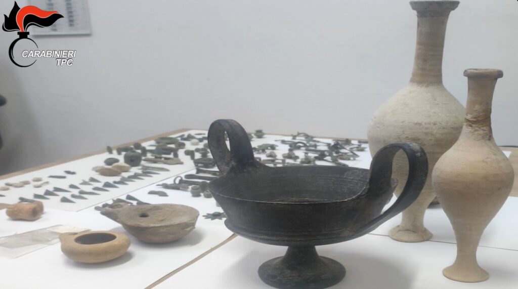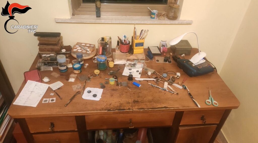 Palermo – Nell’ambito di una complessa indagine denominata “Ghenos”, i carabinieri del Nucleo Tutela Patrimonio Culturale di Palermo, coordinati dalla Procura Distrettuale di Catania, hanno eseguito, con il supporto dell’Arma dei Carabinieri competente sul territorio e con la partecipazione del 12° nucleo elicotteri carabinieri e dello squadrone eliportato carabinieri “Cacciatori Sicilia”, contestualmente nelle province del territorio siciliano, Catania, Messina, Siracusa, Ragusa, Caltanissetta, Enna, estendendo le attività di delega anche a Roma, Firenze, Ravenna, Ferrara, fino anche in territorio estero, Regno Unito e Germania, un’ordinanza di applicazione di misure cautelari personali, emessa dal G.I.P. del tribunale di Catania su richiesta della locale Procura della Repubblica, nei confronti di 45 soggetti tutti, a vario titolo, ritenuti responsabili dei reati di associazione per delinquere (art. 416 c.p. co. 1, 2 e 3 c.p.), violazione in materia di ricerche archeologiche (art. 175, c. 1, lett. A, D.Lgs. 42/2004), impossessamento illecito di beni culturali appartenenti allo Stato (art. 176, c. 1, D.Lgs. 42/2004), impiego di denaro di provenienza illecita (art. 648 ter c.p.), furto di beni culturali (art. 518 bis c.p.), ricettazione di beni culturali (art. 518 quater c.p.), autoriciclaggio di beni culturali (art. 518 septies c.p.), falsificazione in scrittura privata relativa a beni culturali (art. 518 octies c.p.), uscita o esportazione illecita di beni culturali (art. 518 undecies c.p.), contraffazione di opere d’arte (art. 518 quaterdecies c.p.) e ricettazione (art. 648 c.p.).