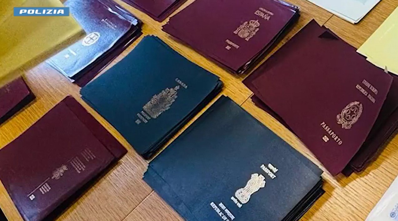 All’interno dei colli, i poliziotti hanno rinvenuto numerosi componenti destinati alla fabbricazione di passaporti falsi: pagine interne di libretti, copertine rigide con stemmi e scritte ufficiali, ologrammi e pellicole di sicurezza.