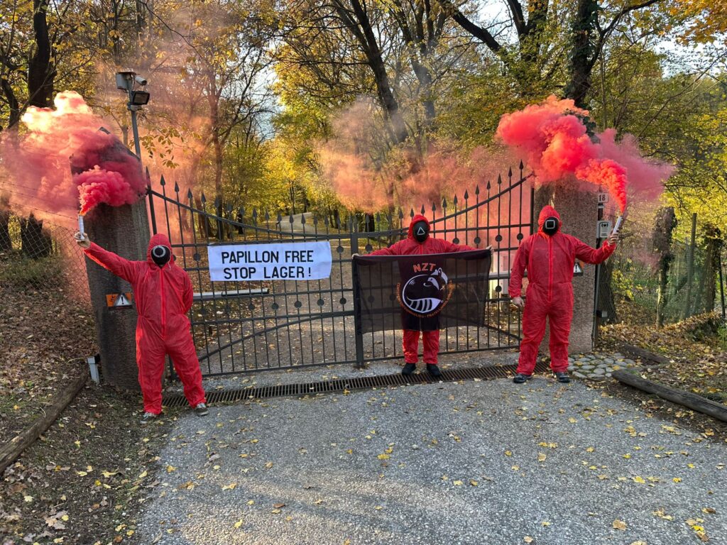 Per l’occasione hanno acceso dei fumogeni di color rosso (ecologici) davanti ai cancelli del Casteller (già usati le volte scorse) per far sentire la loro presenza a Papillon, dato che gli Orsi hanno un olfatto davvero unico. Altri fumogeni sono stati accesi davanti alle cantine Ferrari, questa volta gialloblù, per ricordare il colore storico della bandiera di Trento.