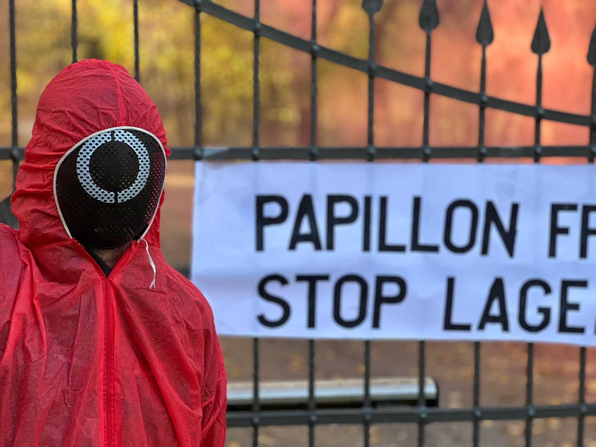 I militanti per l’occasione si sono travestiti, non a caso, con costumi della serie televisiva Coreana di grande successo, “Squid Game”.