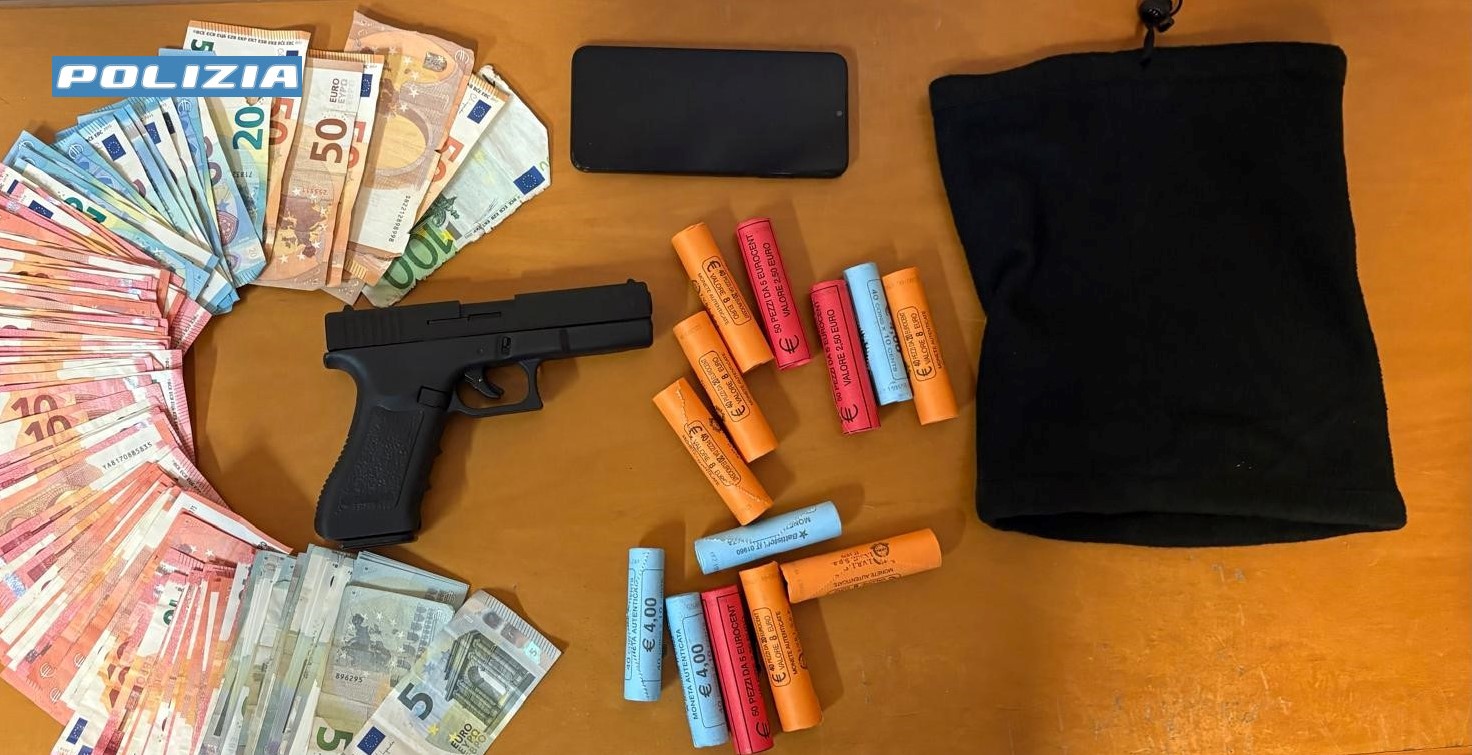 Il giovane è stato bloccato dai “Falchi” della Squadra Mobile: sequestrata una pistola a salve priva di segni distintivi.