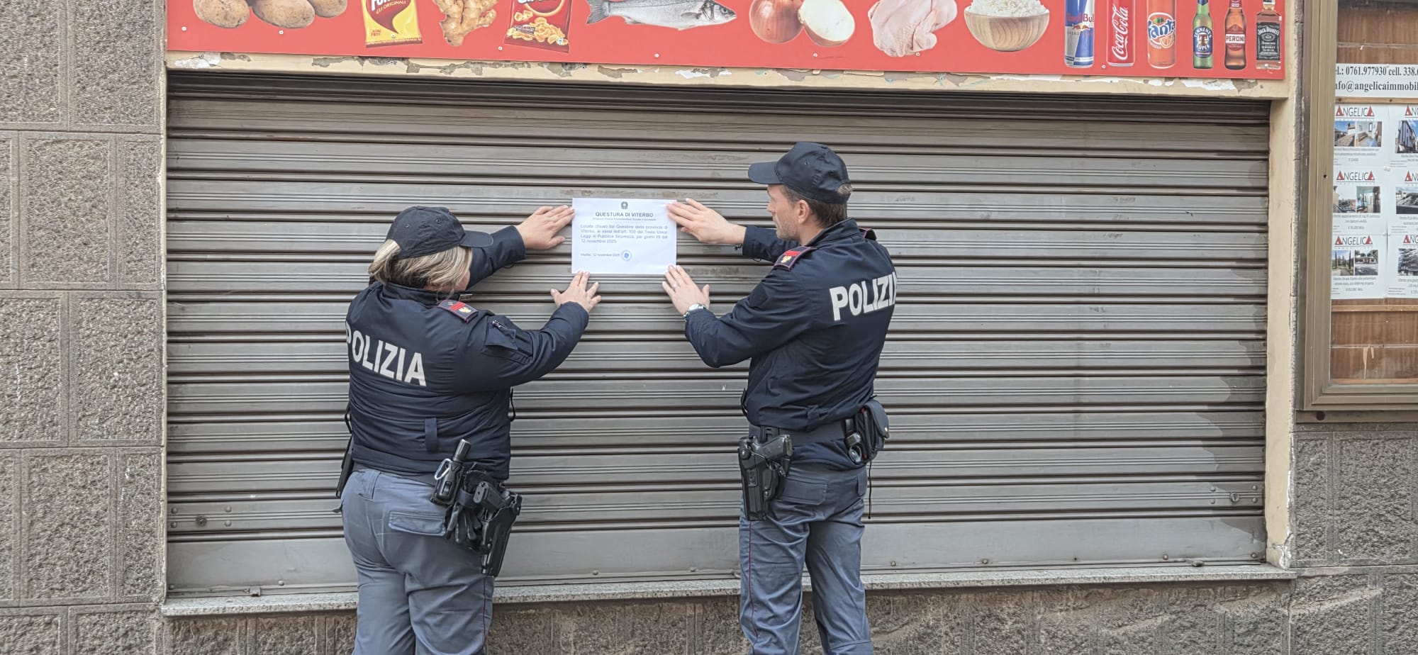 Viterbo – Il personale della polizia di Stato della Questura ha eseguito un provvedimento di chiusura ai sensi dell’articolo 100 del Testo Unico delle Leggi di Pubblica Sicurezza, per un periodo di quindici giorni, nei confronti di un minimarket sito nella zona del Sacrario.