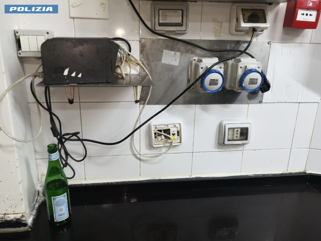 A completamento del quadro, è stata riscontrata la presenza di pannelli non ancorati al muro, pavimentazione disconnessa ed impianti elettrici fatiscenti. Le gravi condizioni riscontrate all’interno degli impianti hanno determinato il sequestro immediato del locale.