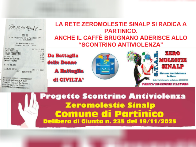 Palermo – Il SINALP Sicilia, attraverso la propria Rete Zeromolestie Sinalp, esprime profonda soddisfazione per l’avvio operativo del progetto “Scontrino Antiviolenza” nel comune di Partinico.