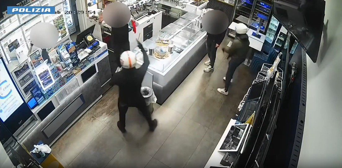 A completare e cristallizzare la ricostruzione degli investigatori sono stati i frame estrapolati dal sistema di videosorveglianza dell’esercizio commerciale, il rinvenimento dello scooter utilizzato per la fuga e dei capi di abbigliamento indossati al momento del colpo.