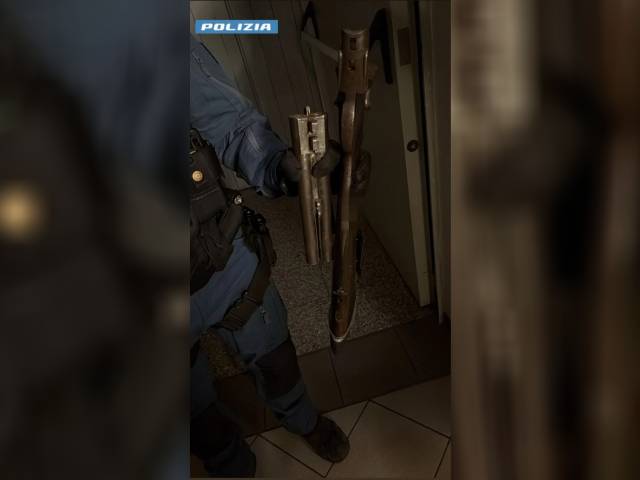 Alla richiesta dei poliziotti, l’uomo non apre la porta costringendoli a forzarla per fare accesso all’interno dell’appartamento. Nel corso della bonifica, nell’armadio della camera da letto, gli agenti trovano un fucile con le canne mozzate e un sacchetto contenente diverse munizioni. Sotto il materasso del letto, una bomba a mano modello M 75 perfettamente funzionante con una cordicella collegata alla spoletta pronta all’uso, fatto che richiede l’intervento degli artificieri e dell’unità cinofila antiesplosiva. Il palazzo, a questo punto, viene evacuato per la messa in sicurezza dell’ordigno.