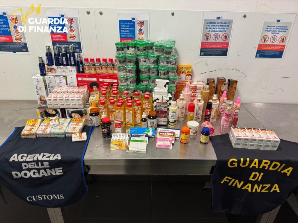 Controlli mirati sui voli da Paesi a rischio: sequestrati 12.000 unità di cosmetici e medicinali. Responsabili denunciati alla Procura.